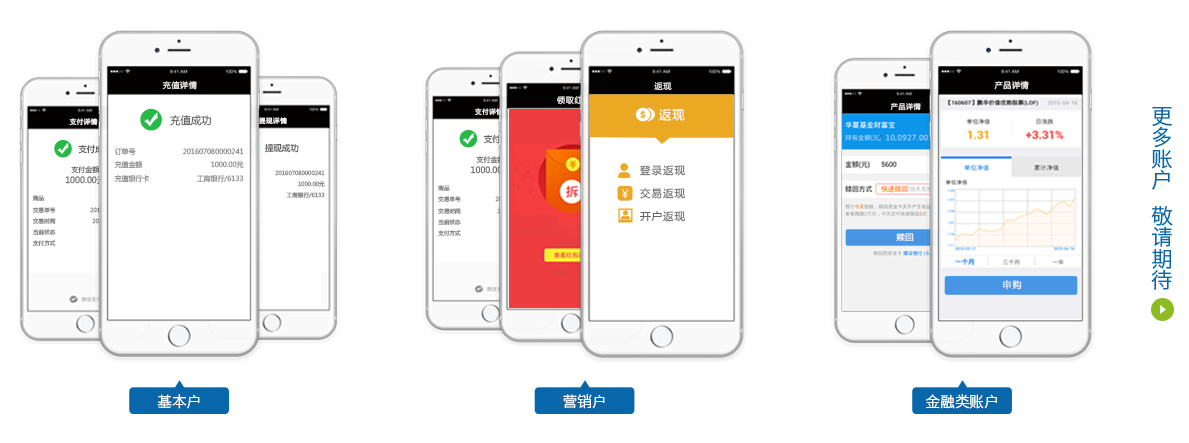 支持支付宝、微信、银联、QQ钱包、快钱等主流支付渠道,让您拥有PC网页支付、扫码支付、手机APP支付、移动HTML5支付、微信公众号支付。